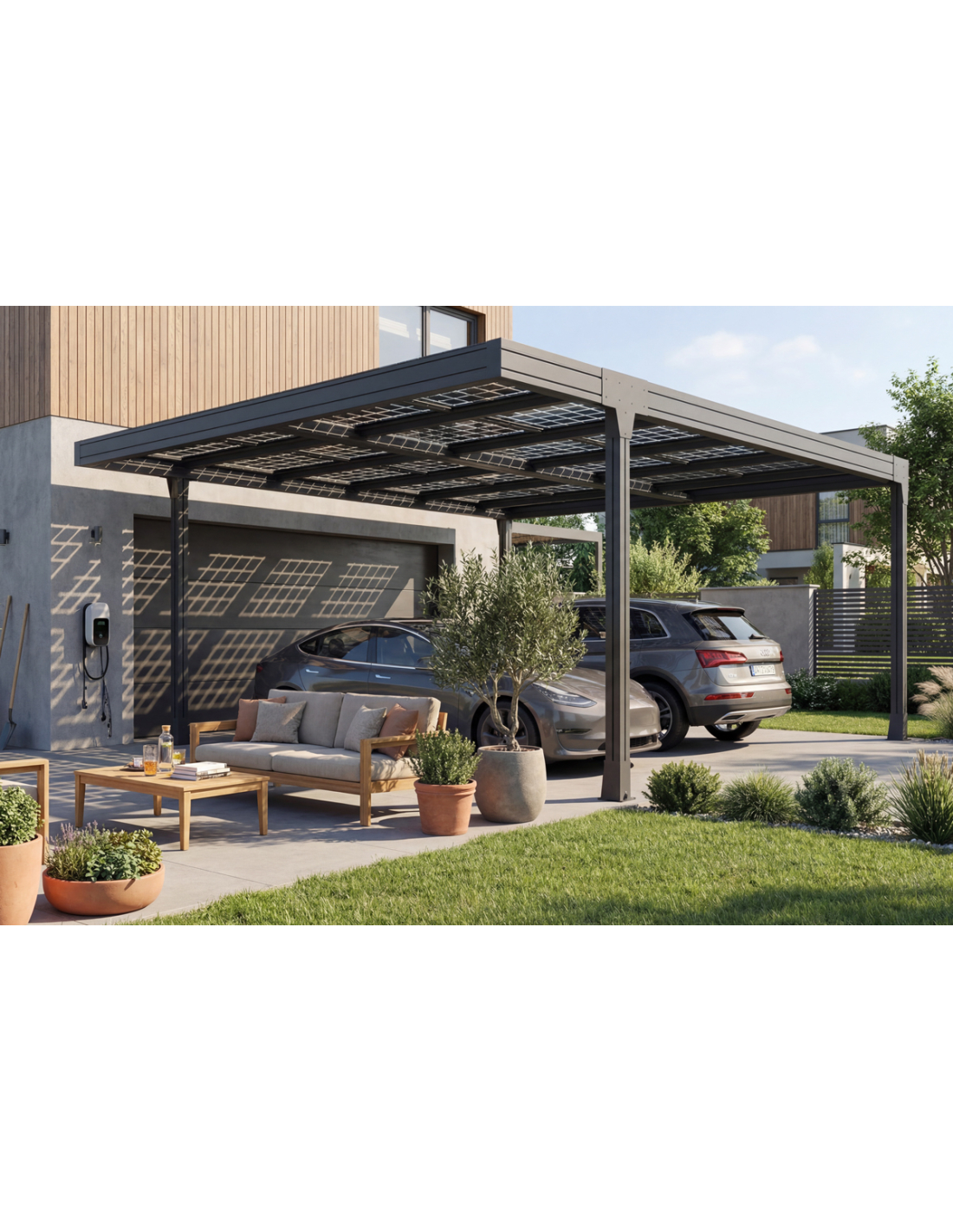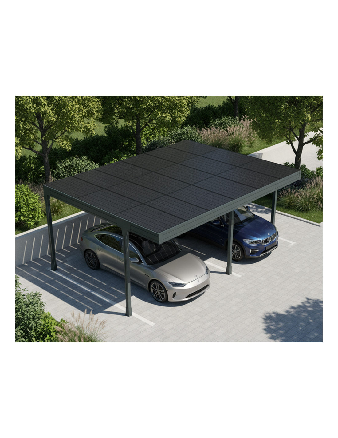 El Carport solar fotovoltaico Santillana – postes desplazados es la solución perfecta para estacionar dos vehículos bajo un mismo módulo con total comodidad. Su diseño con postes desplazados facilita las maniobras y optimiza el espacio disponible, reduciendo el riesgo de golpes y daños tanto en el vehículo como en la estructura. Una opción práctica, segura y eficiente para el día a día.