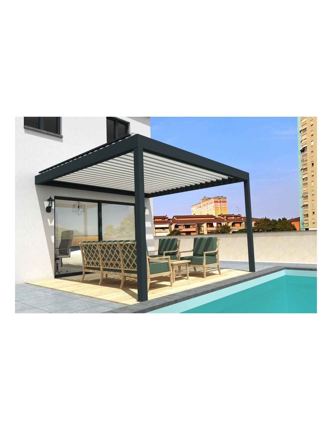 Totalmente impermeable en días de lluvia, nuestra pérgola brinda una regulación parcial o total del flujo de luz en días soleados. La pérgola Mareal ofrece un espacio acogedor siempre iluminado. Su ventilación natural permite la circulación de aire en un refugio idealmente templado.