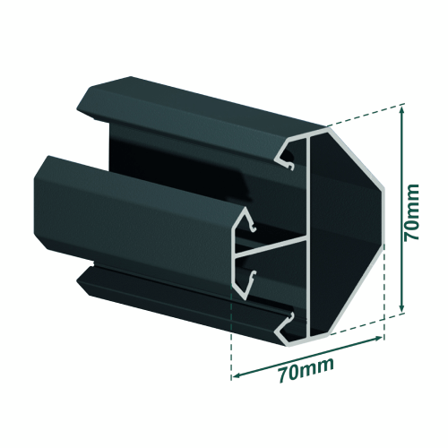 Poste esquinero de aluminio para valla de paneles calados, paneles macizos o paneles de protección visual de 1800 mm x 70 mm x 70 mm.